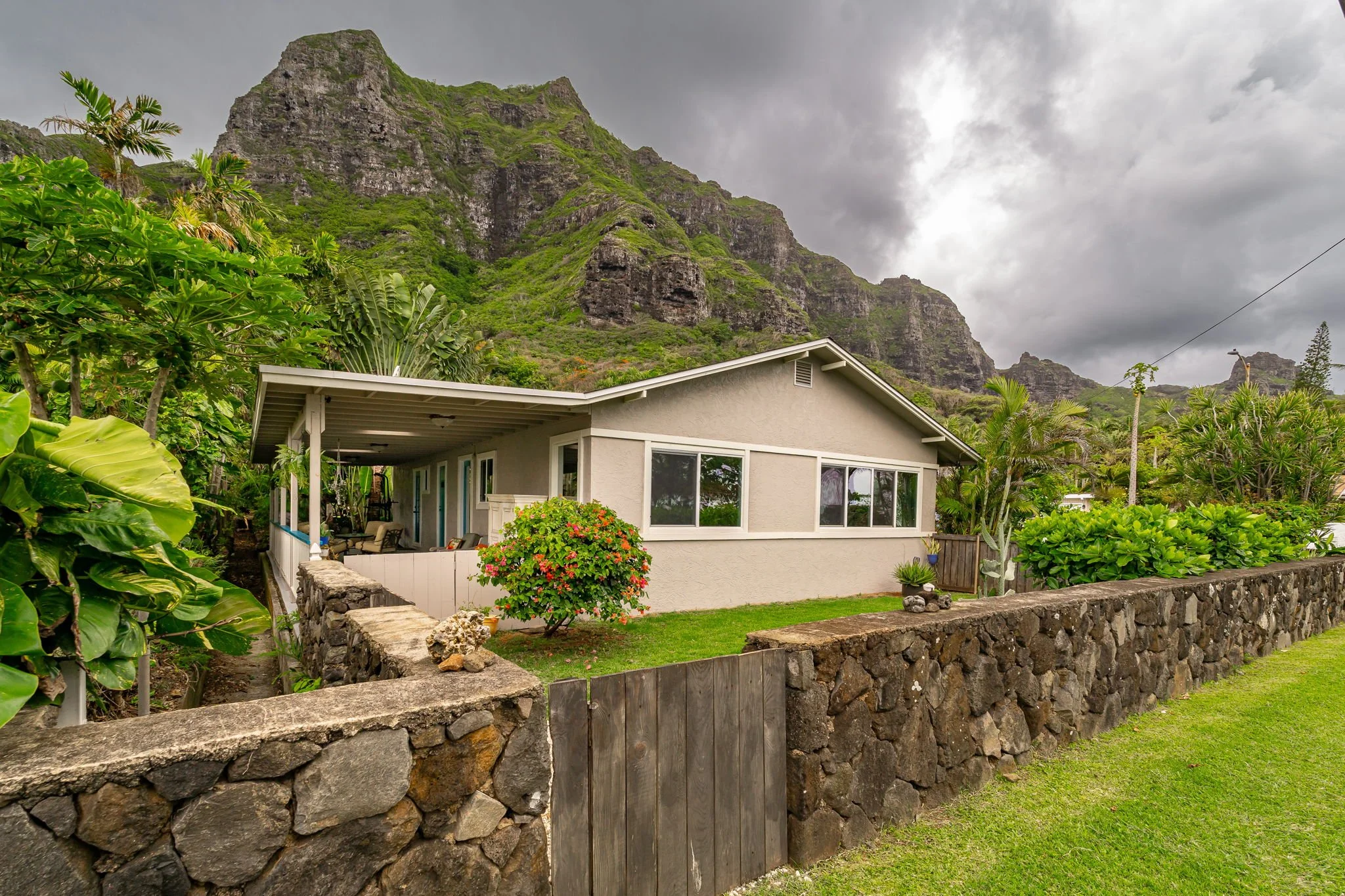 Look no further for the perfect single-level home, in a stunningly gorgeous area of Windward Oahu. Oahu’s indoor-outdoor lifestyle is at its best here, with a huge covered lanai, front porch, and beautifully landscaped yard filled with tropical plants and fruit trees. AC, PV and just a hop, skip and jump to the water. For beaching, swimming, SUP, kayaking, hiking, or fishing, you can’t beat this amazing location!