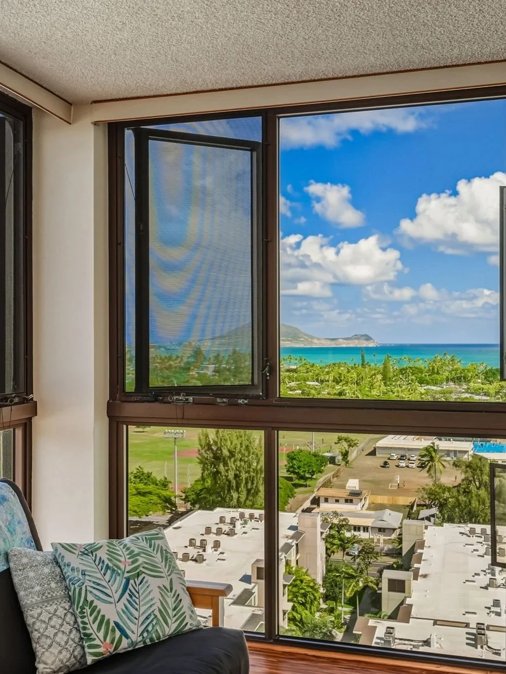 Windward Passage is a premier Kailua condominium, well-run, and with all the amenities you desire: on-site manager, secured entrance, pool, fitness center, tennis/pickleball courts, dog park, car wash area, recreation deck and room, surfboard storage, and a separate storage locker.