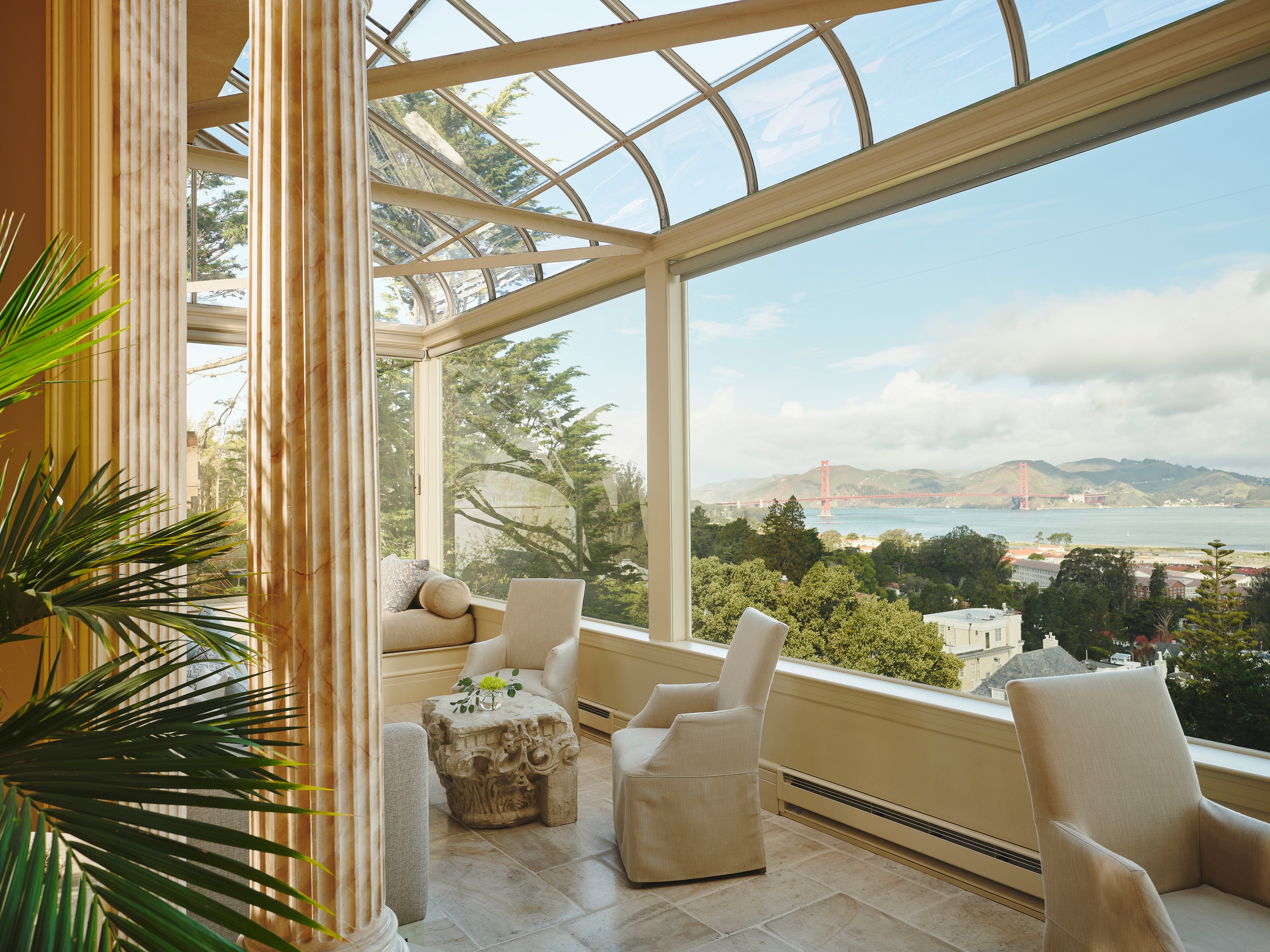| This extraordinary five-level corner estate offers rare privacy and sweeping panoramic views of the Bay and the Golden Gate Bridge. Located next door to the Gettys’ iconic Broadway mansion, the 1899 residence has appeared in multiple Hollywood films and has been selected as a Showcase home twice in its history, including in 2024. Recently, the property sold for $17.75 million, represented by Compass agents Karen Gould and Max Armour. |