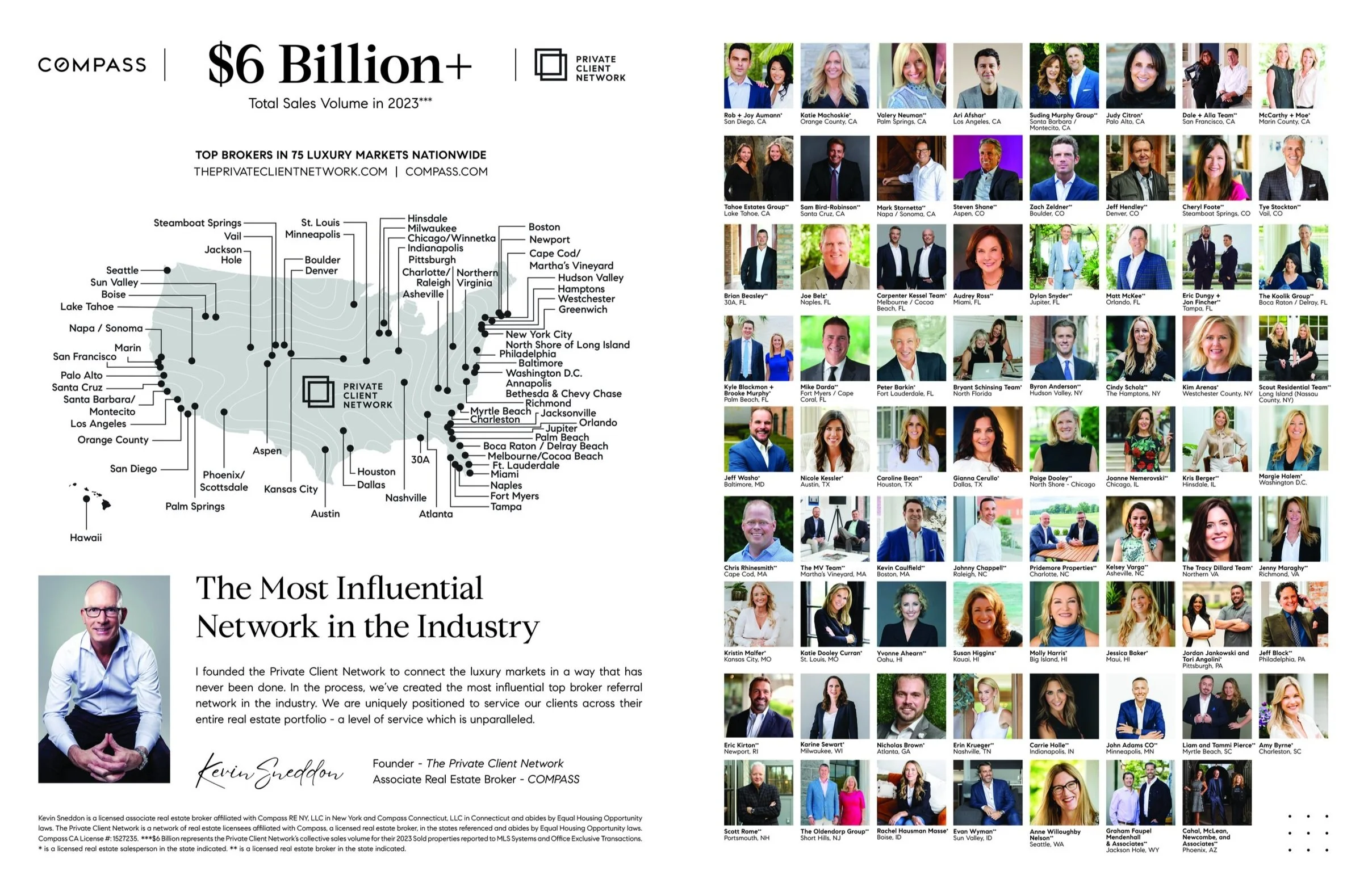 And as of 2024, we also have the new Private Client Network Magazine: The PCN Collection Magazine. This high-end lifestyle magazine is crafted to spotlight premier properties within The Private Client Network of COMPASS agents, and features editorial highlights from top tastemakers and experts in food, entertainment, design, and travel. It’s an exciting, powerful showcase of our luxury portfolio and brand vision. The PCN Collection Magazine will be distributed nationwide, with copies distributed directly to all PNC Agents and at private airports including LAX (Los Angeles), TMB (Miami), F45 (West Palm Beach), VNY (Van Nuys), and HPN (White Plains).